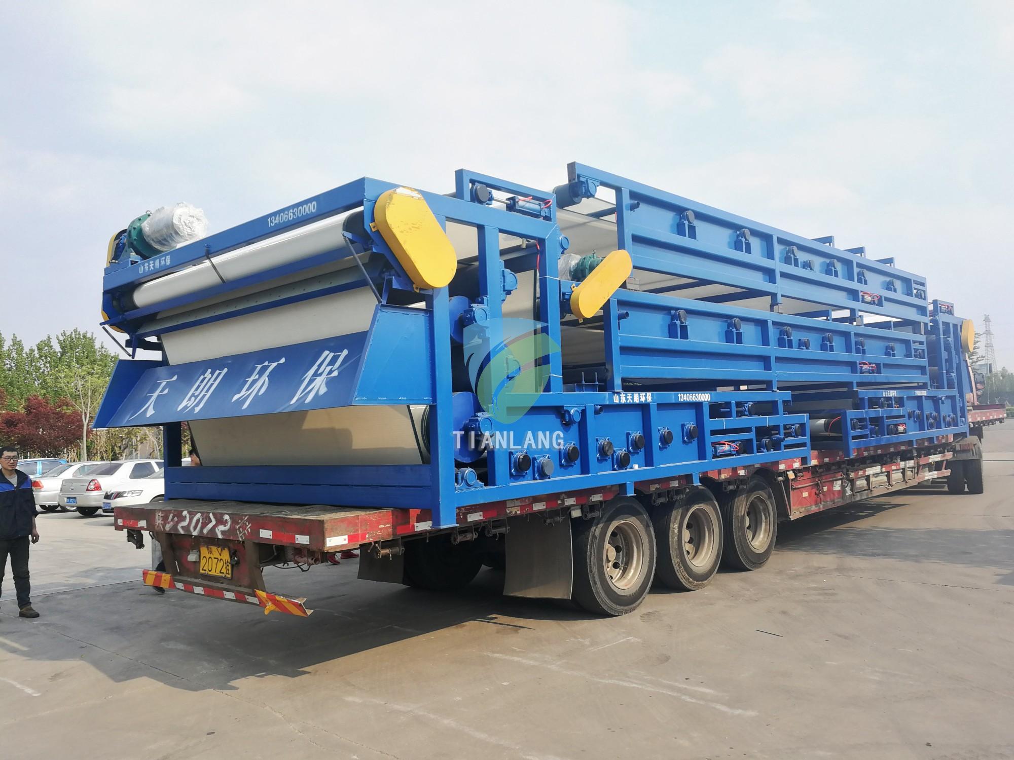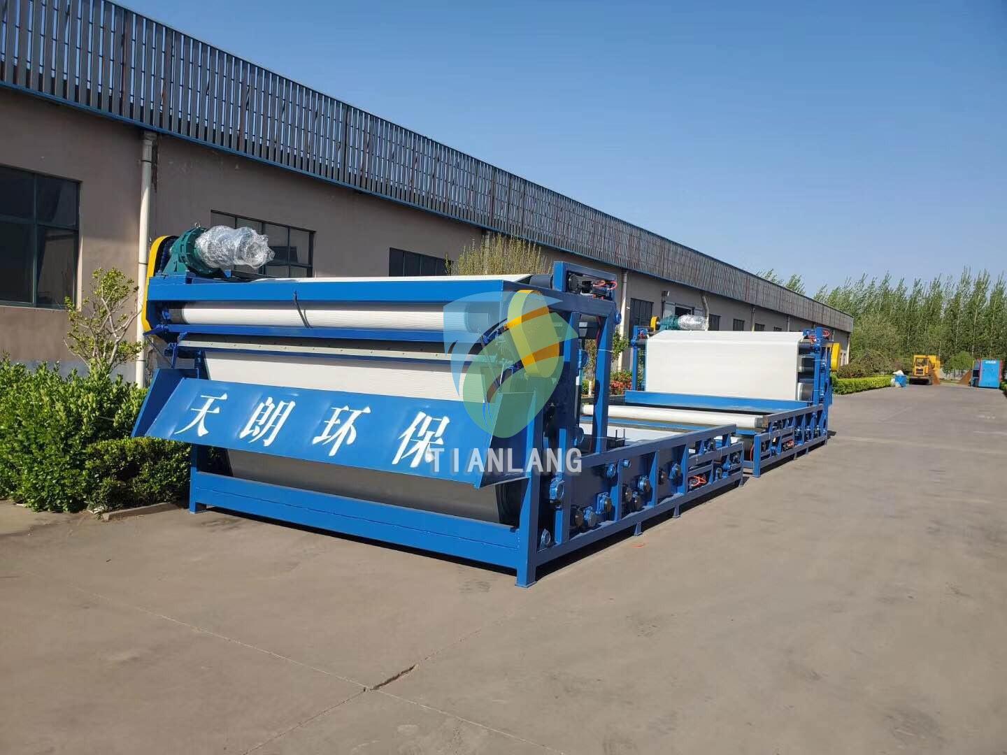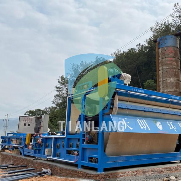 Belt press filter machine sludge dewatering for coal washing plant on the basis of TLYL belt filter press,we absorbed the latest mechanical concentration and dewatering method in foreign countries and developed the new integrative concentrated, press filter and dewatering machine for sludge. Sludge fully reacts with coagulant will flow into material distributor in concentration part then dewatered along the movement of filter cloth under two-way guidance of mud rake and gravity. Reverse mechanism will transfer sludge to gravity dewatering area for further dehydration and in S-shape area pressed by roller with different diameters, sludge is again dehydrated between upper-lower filter cloth. Finally it will be scraped and cloth be cleaned during operation automatically. It features large productivity and high dewatering capacity.